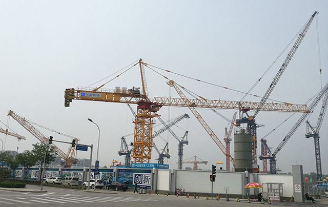 群塔干涉系統須建立在單套設備基礎之上,通過對塔機高度、幅度、回轉角度的采集,立體建模,通過中心計算機軟件計算從而實現群塔之間相互預警,防碰撞功能。具體功能如下: 報警功能,區域作業內的塔機轉動到干涉范圍后,如果存在干涉的兩臺塔機滿足干涉報警條件時:距離小于設定的預警距離,大于報警距離時,裝有監控設備的塔機發出斷續的聲光報警提示;距離小于設備的報警距離時,發出連續的強烈的聲光報警提示的同時,控制輸出信號控制塔機高度上下行動作、小車前進后退動作,但不控制回轉輸出。 數據顯示:區域范圍內作業的塔機通過Zigbee將塔機的實時發送到現場主機,現場主機可以對接收到的信息進行統計和數據分析,同時界面顯示圖片可以清晰的看到塔機大臂和小車運行位置。