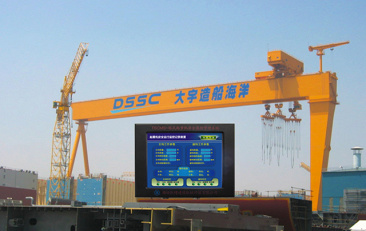 根據GB/T28264-2012 相關技術要求,門式起重機監控系統對起重機的各個機構信號進行采集并實現以下功能: 1.主鉤載重顯示單位“噸”,當載重達到額定起重量90%時,系統發出報警信號; 2.主鉤高度顯示單位為”米”; 3.運行行程顯示包括,剛性行程、柔性行程、小車行程及運行偏差(偏斜限制器)的顯示,當同步偏差大于準許值后,系統發出聲光報警信號; 4.顯示起重機主/副鉤歪拉斜吊的傾斜角度,角度超過限定值時,裝置自動切斷起升控制回路; 5. 風速顯示單位為”m/s”, 當環境風速大于預設風速時發出聲光報警,并停止起重機運行; 6. 同一或不同一軌道運行機構的安全距離,顯示器顯示“防碰撞報警” 7. 操作指令:監控主機通過讀取PLC輸入點狀態,得知大車、小車及主鉤的操作指令,并通過顯示器實時顯示; 8. 監控系統顯示累計工作時間,統計并保存工作循環信息; 9. 監控狀態顯示:起升機構的制動狀態、抗風防滑狀態、門限位狀態、機構間的運行聯鎖、供電電纜卷筒狀態; 10. 實時數據存儲及下載,監控主機存儲操作指令數據、工作循環、故障信息及參數修改等,可連續存儲30個連續工作日,并通過軟件對數據進行分析; 11. 視頻監控系統:觀察到起重機吊點以及行走區域。