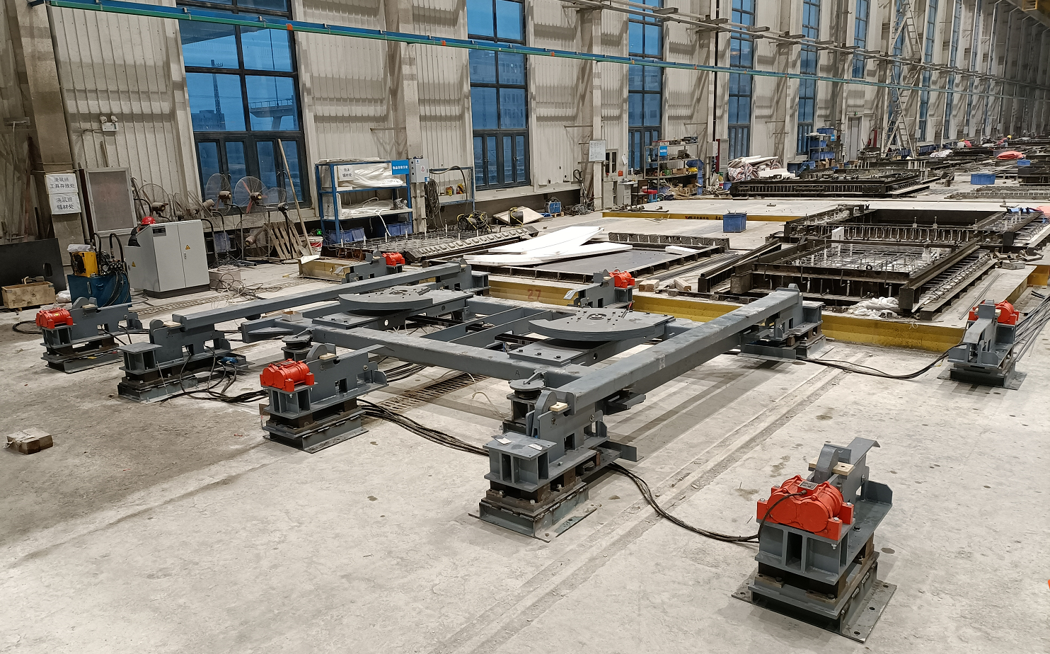 該振動臺可集成在平模流水生產線應用,也可在簡易生產線單機使用,操作方便,可高效振動密實各類混凝土構件,振動噪音低,構件密實度高、質量好。