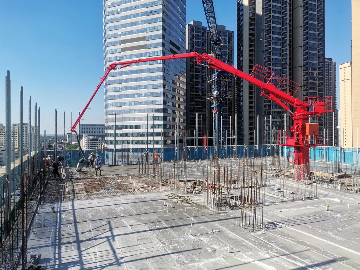 廊坊凱博建設機械科技有限公司生產的?JAINE建研?HGY32和HGY24電梯井爬升式布料機成功在沈陽旭輝鉑悅·公望項目中順利安裝并投入使用。