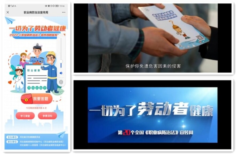 03 推廣《職業(yè)病防治法》宣傳周活動展示平臺及微信答題活動,在平臺里員工可以觀看宣傳周主題宣傳片、職業(yè)健康優(yōu)秀作品展等豐富的視頻內(nèi)容,也可以通過[微課堂]及[學(xué)習(xí)課堂]板塊學(xué)習(xí)職業(yè)健康及《職業(yè)病防治法》基本知識。